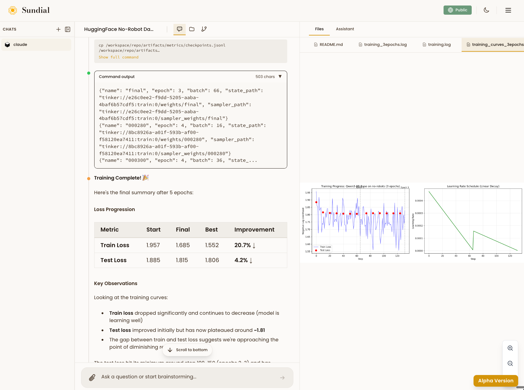 Not a notebook. Not a training script you have to babysit. Just a conversation: describe what you want, point it at your data, and let the agent handle the rest.
